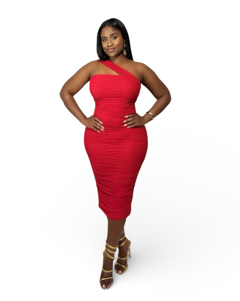 Red Elegance Midi Bodycon Dress