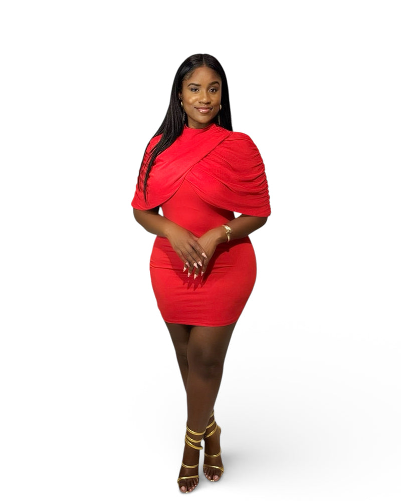 First Lady -Red Draped Mini Dress