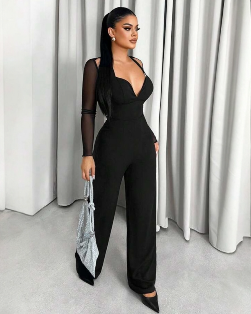 Siren in Black Mesh Sleeves Elegant Jumpsuit