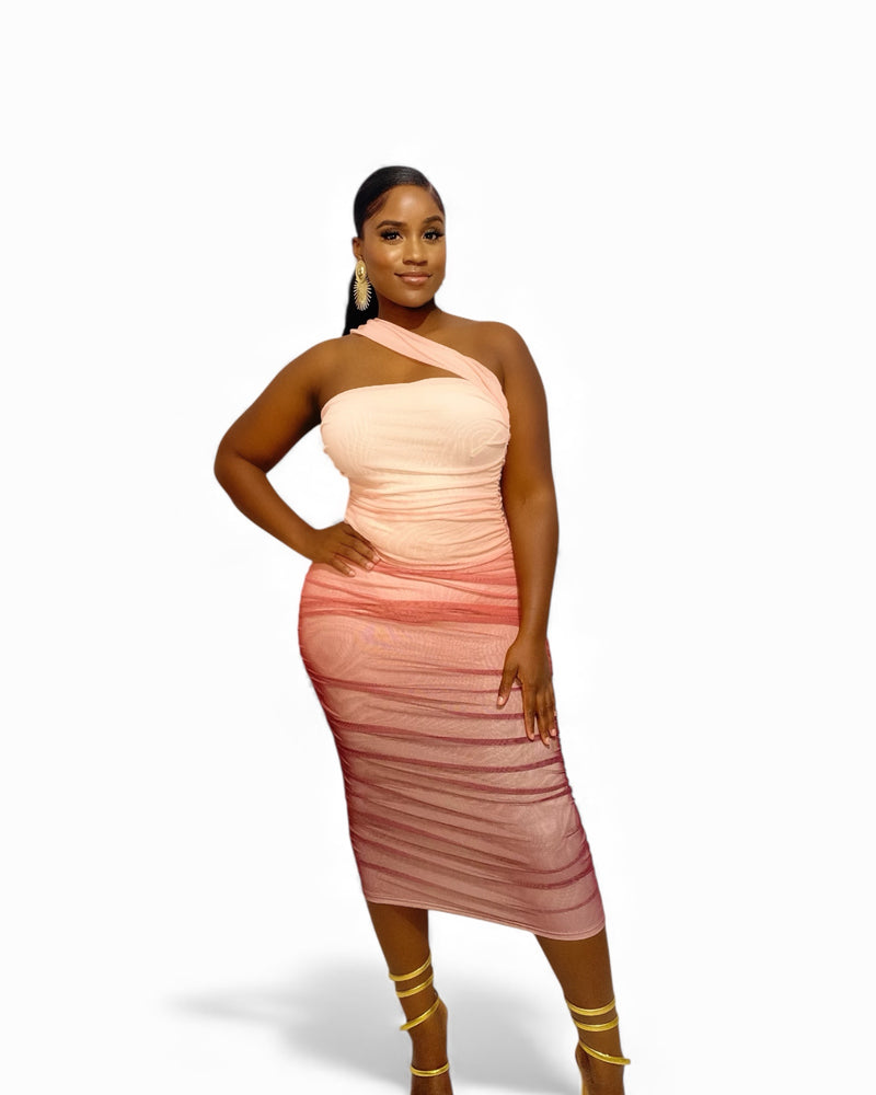 Shades of Pink Elegance Midi Bodycon Dress