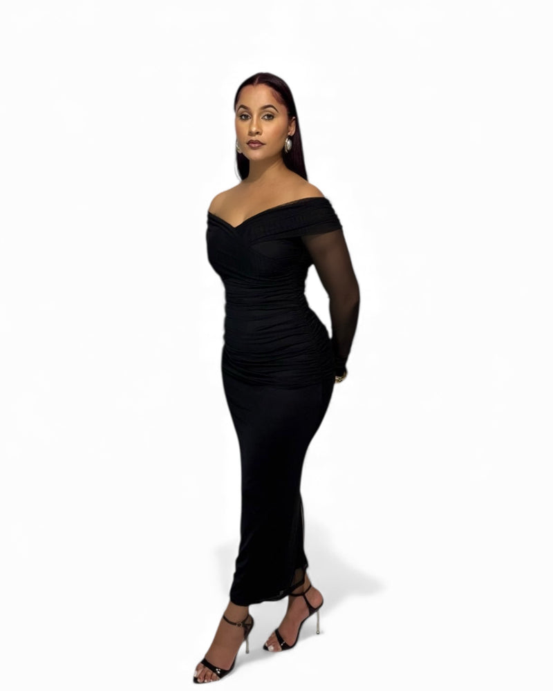 Black Dahlia - Ruched Off the Shoulder Dress with Slit