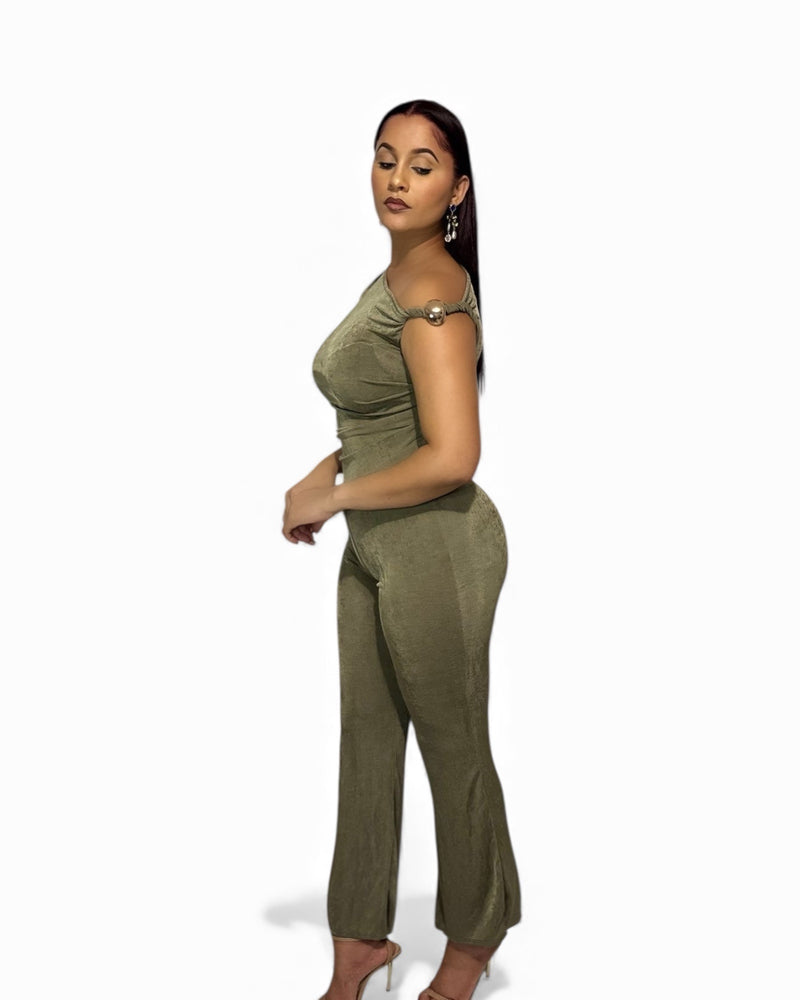 Lets Talk Money Army Green 2 Piece Pants Set