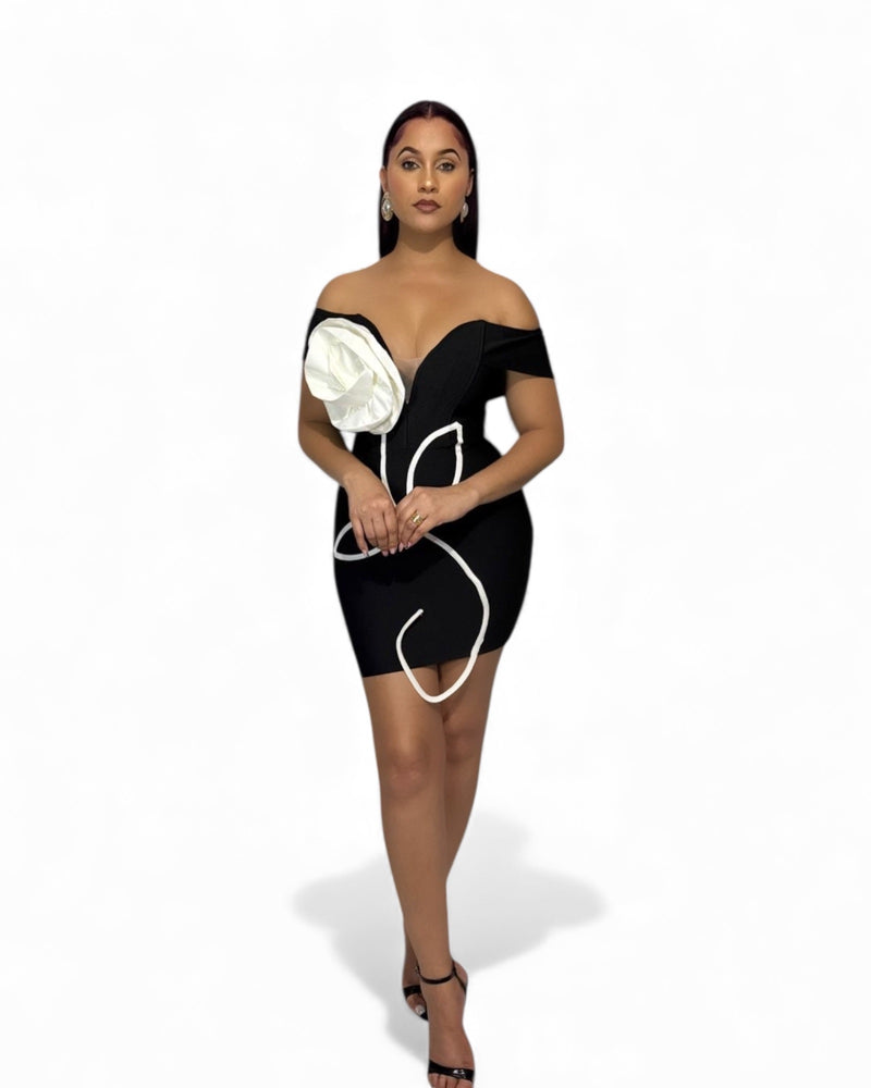 Black Swan Statement Off the Shoulder Middle Slit Maxi Dress