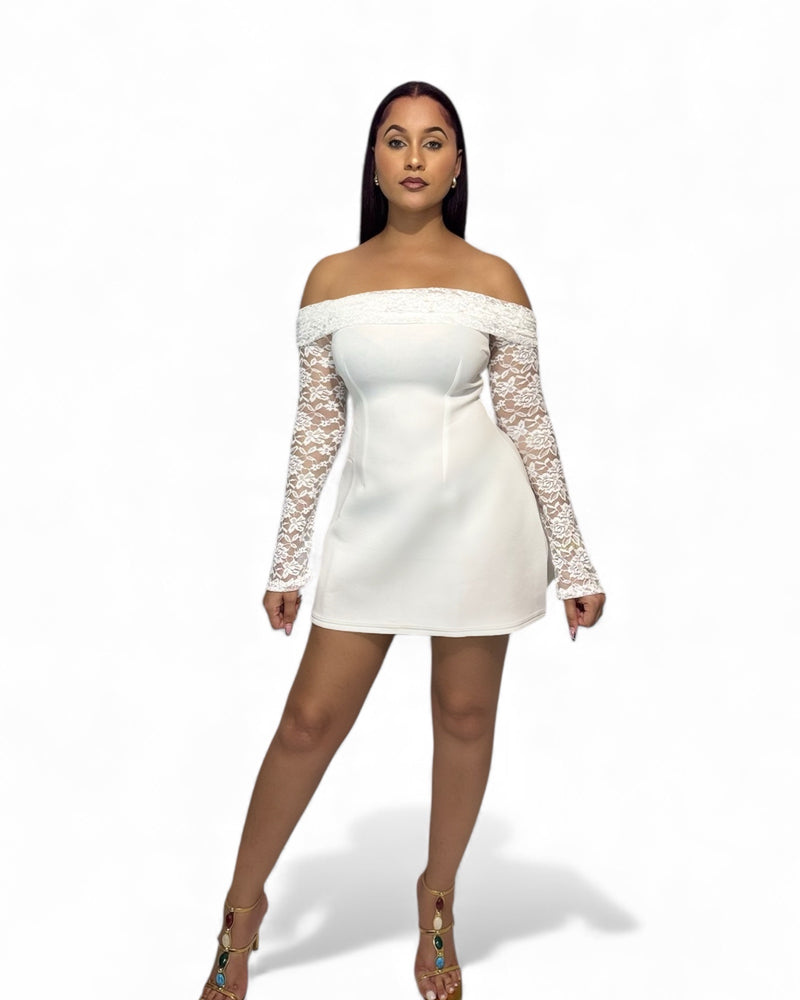 Lady Ruby Off the Shoulder Lace Long Sleeve Mini Dress
