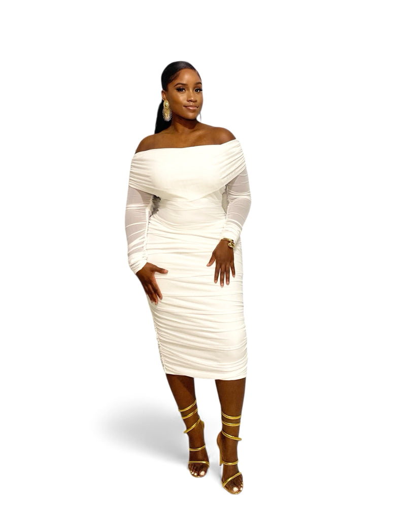 Black Dahlia - Ruched Off the Shoulder Dress with Slit