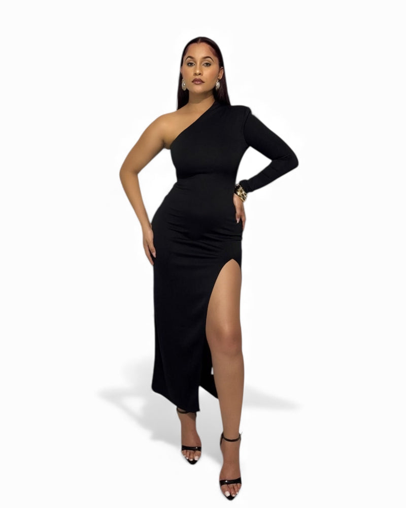 High Fashion - One Shoulder High Slit Black Dress