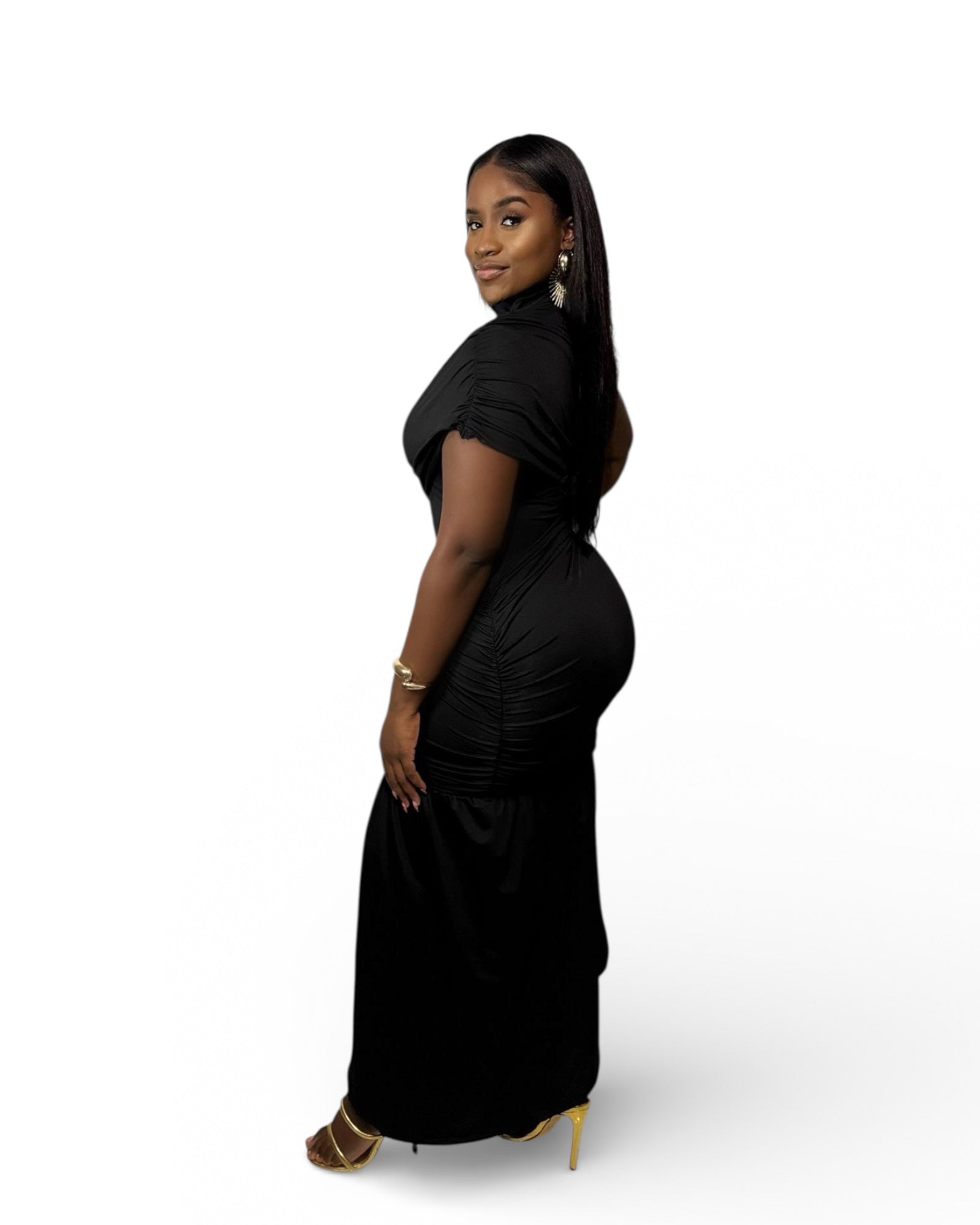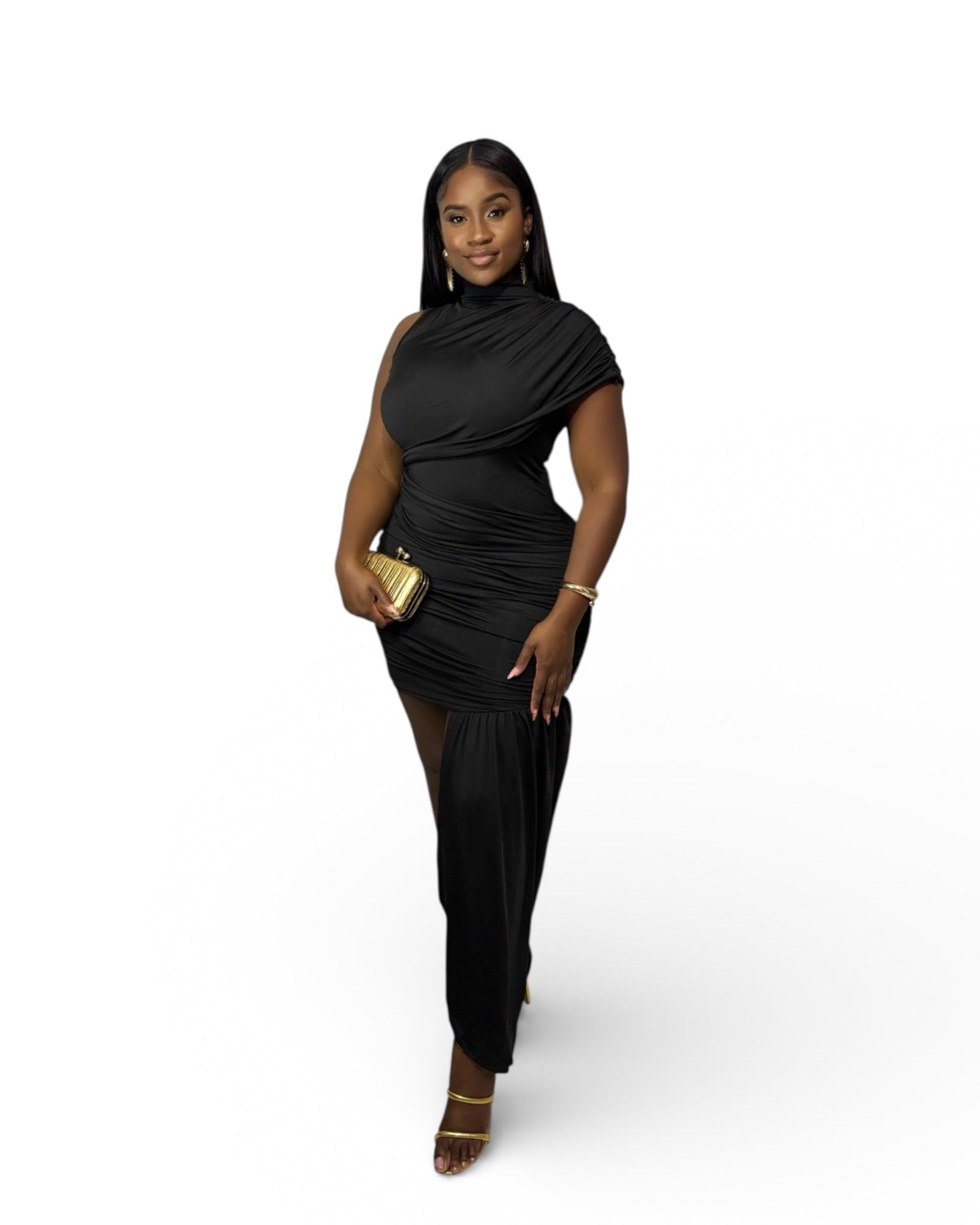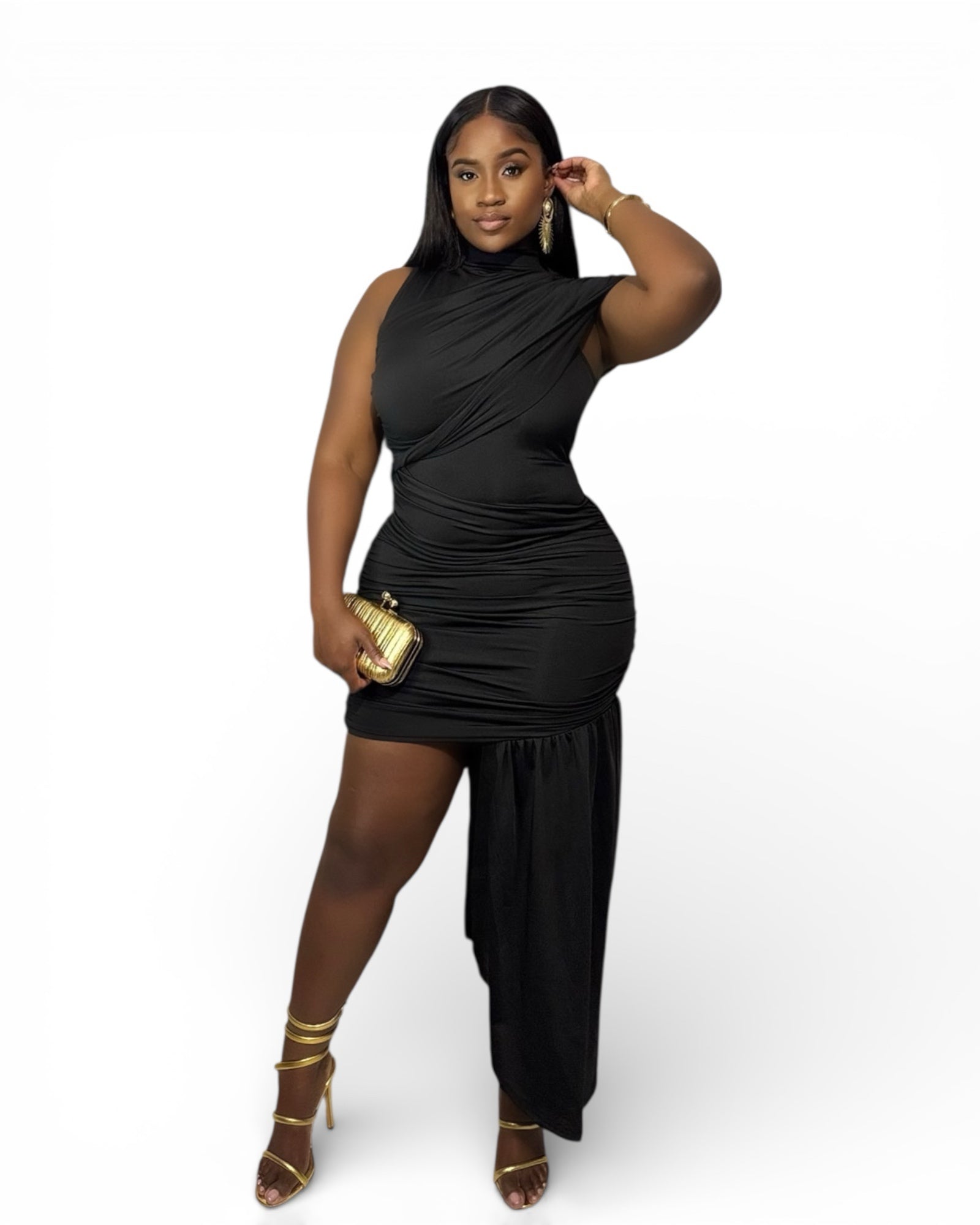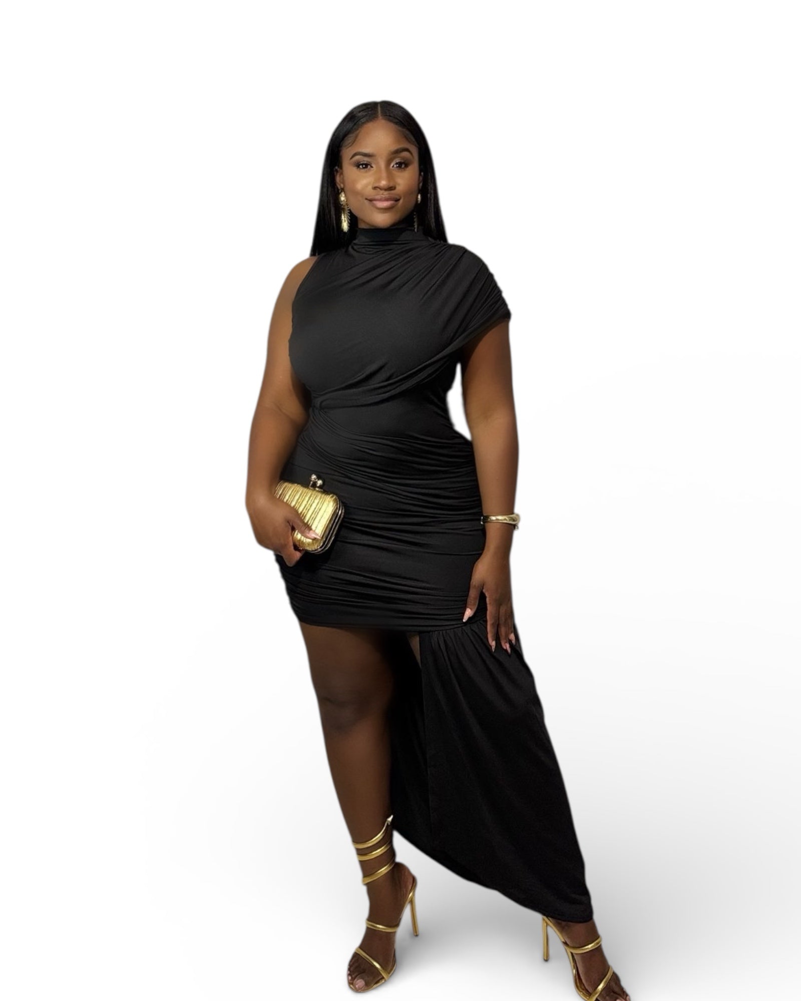 Black Luxe Mini Dress with Drape